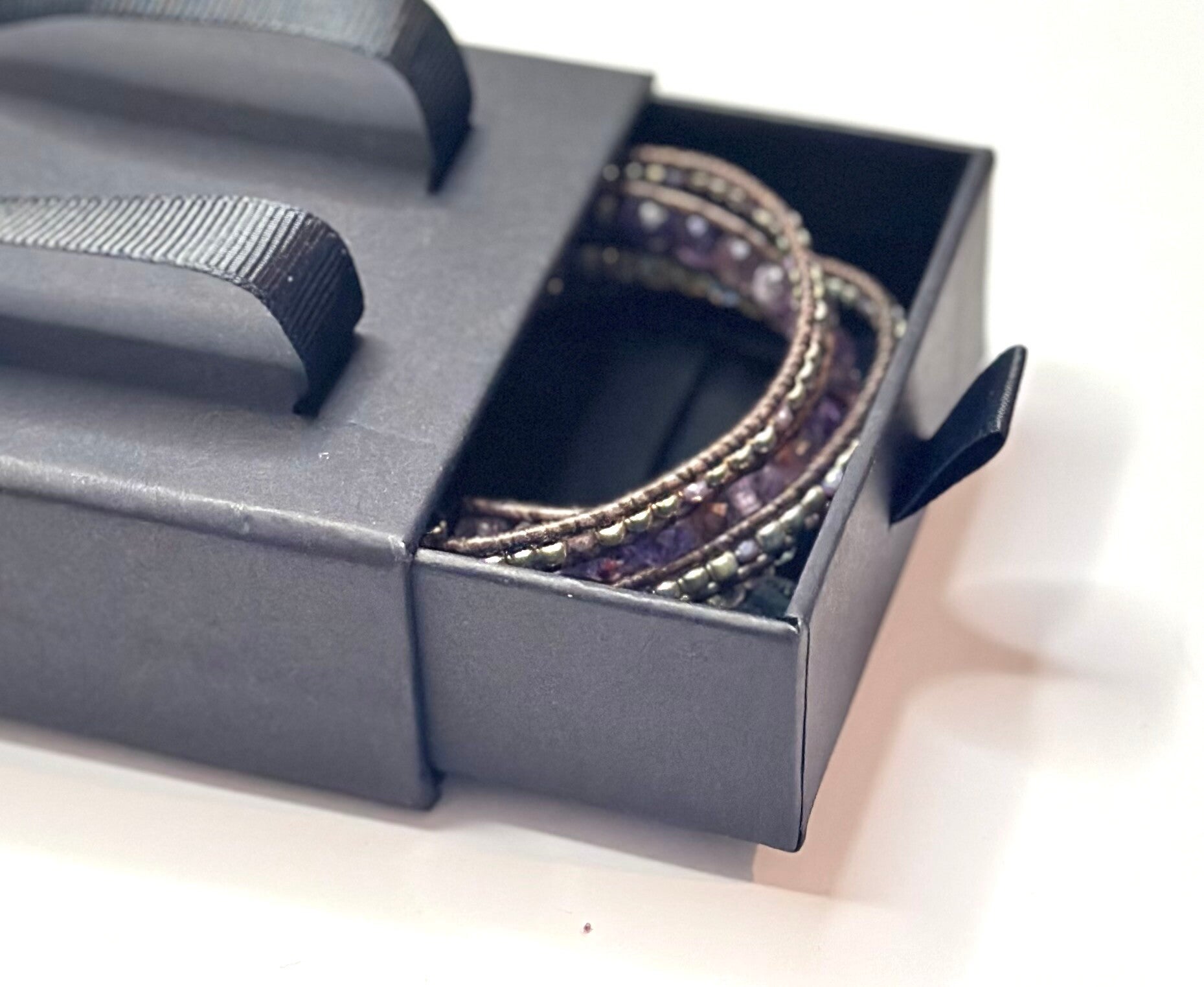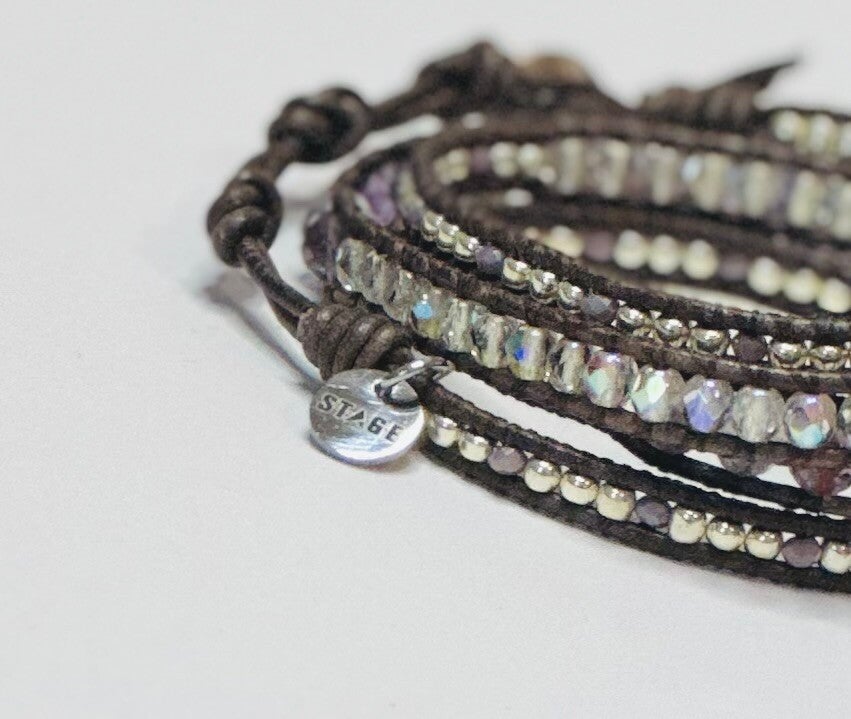 Prachtige Amethist, facet geslepen kralen met een flinke dosis "sparkle" op mooi bruin leder, voorzien van een 925 Sterling zilveren sluiting.